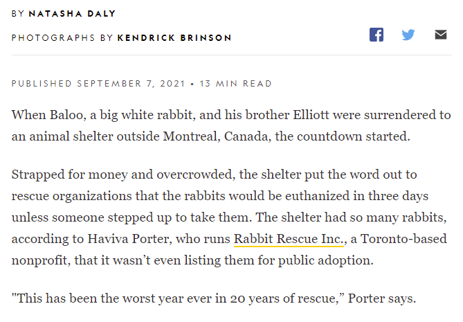 Click the image below to read the full article, featuring an interview with Executive Director of Rabbit Rescue Haviva Porter!