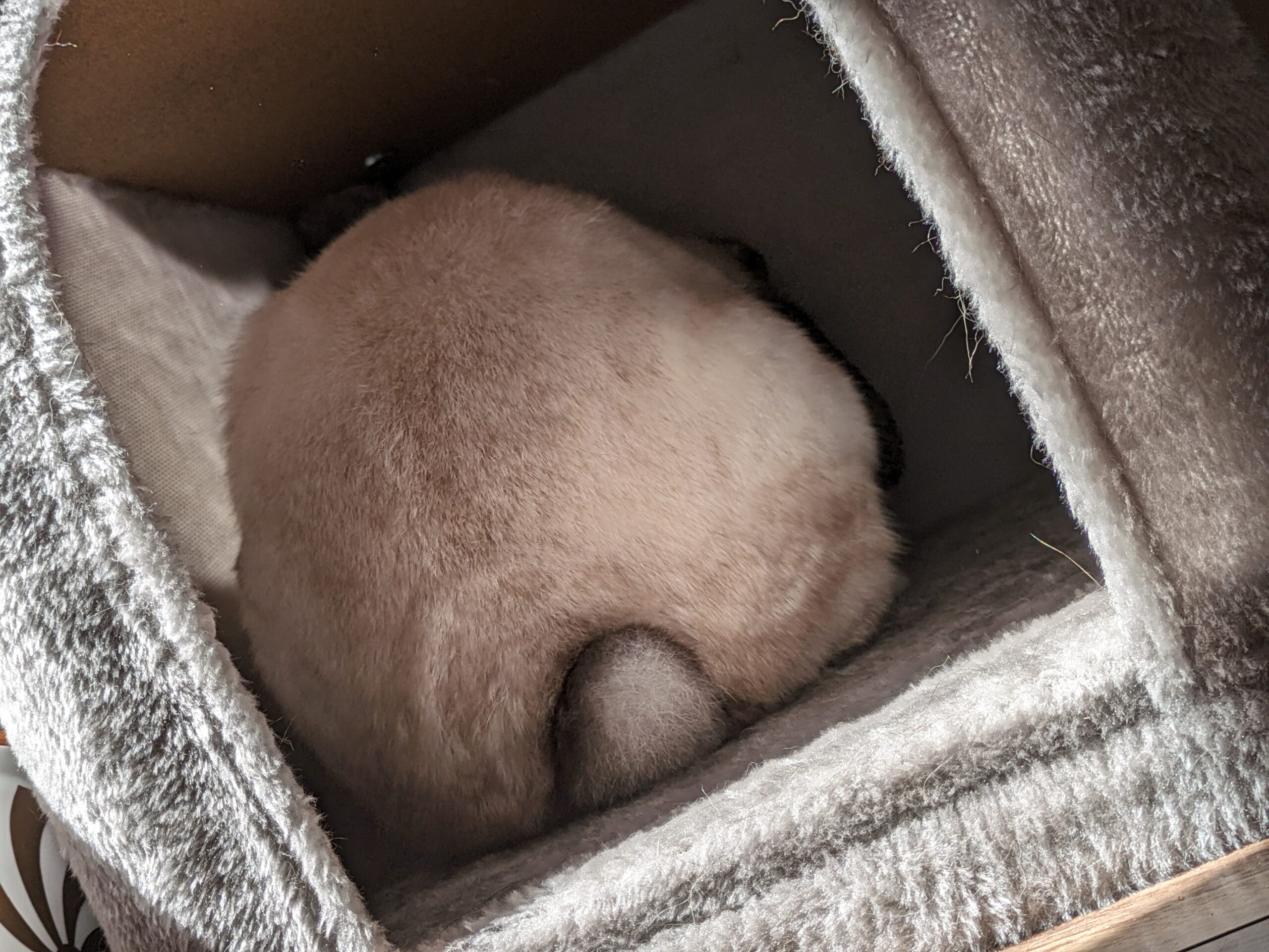 Essie is pretty good with her litter habits. She’s gotten better over time, but will sometimes pee on “soft” things like dog beds and couches (though her foster mom thinks that’s because they have other animals so Essie needs things to smell like her too). She’ll occasionally poop outside of her litter box, but it’s still contained within her “home base” xpen. Speaking of litter, she likes to dig and lay down in it, so either cleaning it daily or having a soft grate-system would help.