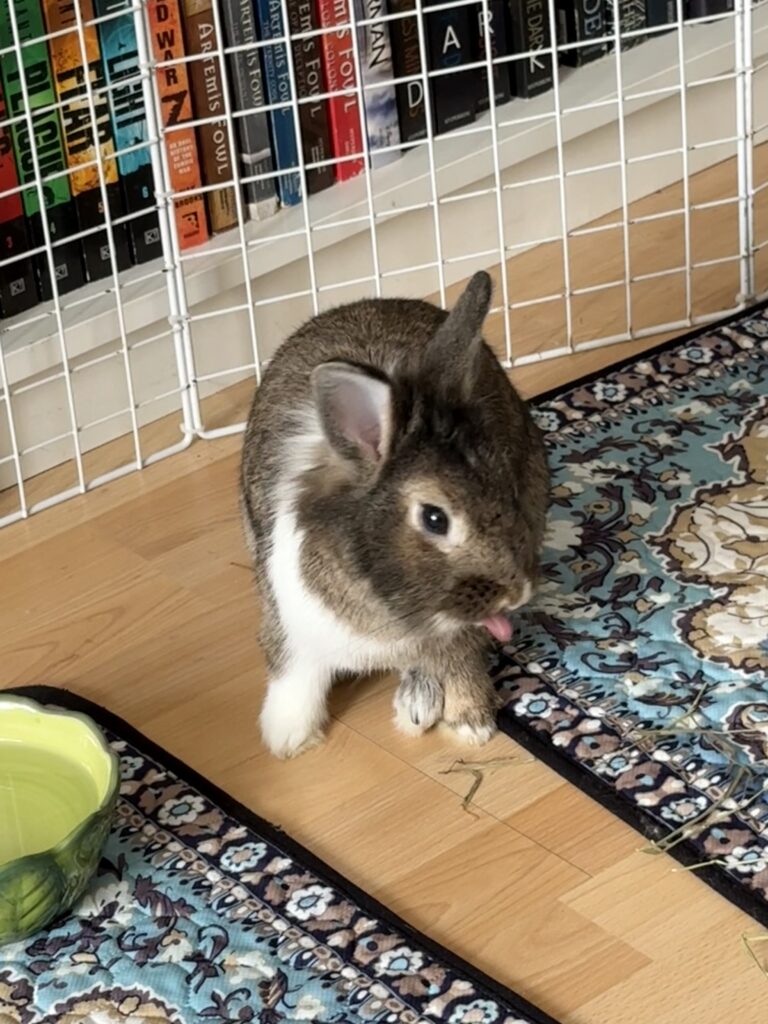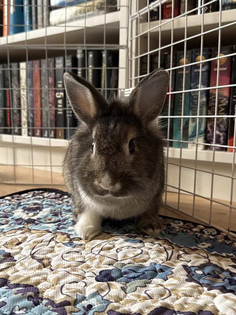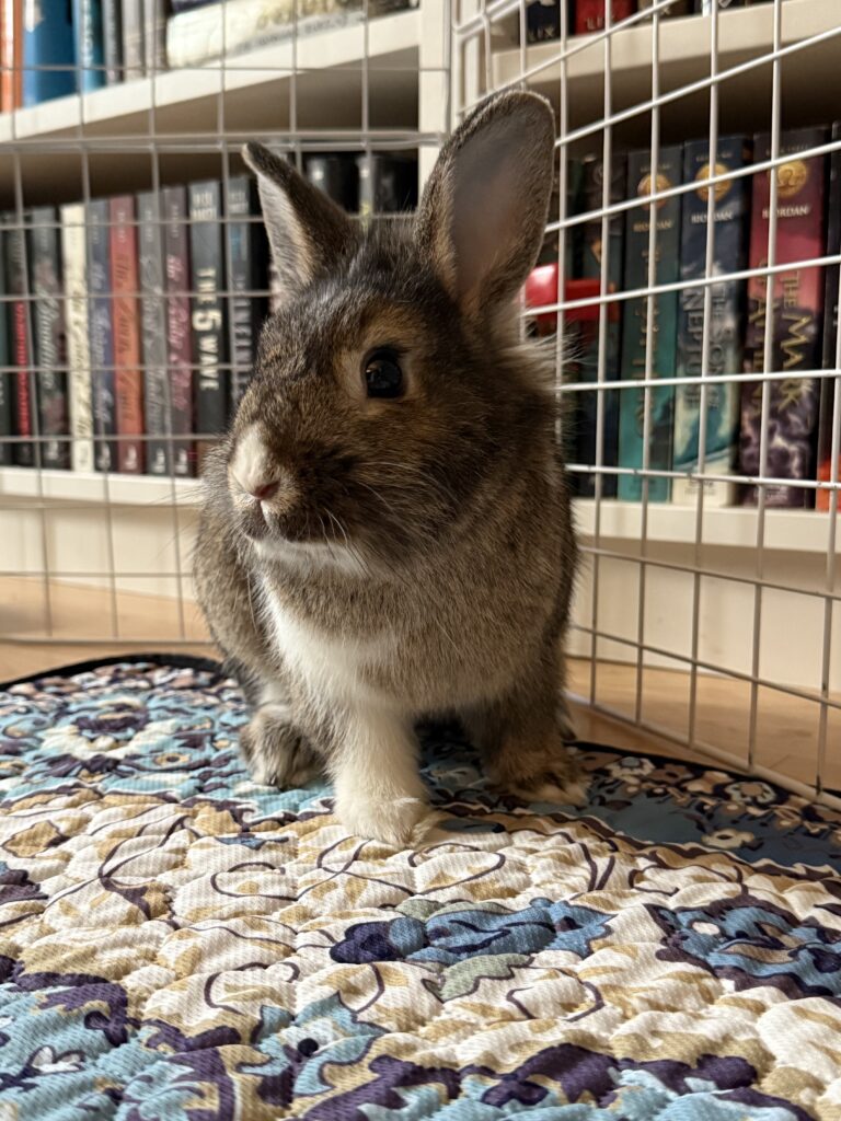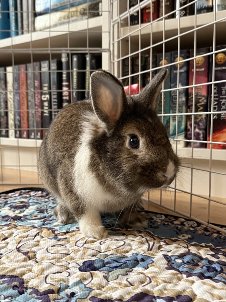 Harrold came to Rabbit Rescue from a local shelter where he wasn’t doing well cooped up in a small space. He is a happy, energetic bunny that wants nothing more than to binky and explore. Since arriving into foster care, he has been enjoying his new life where he can stretch his legs as much as he wants. He’s even become a member of the #couchbunnyrevolution!