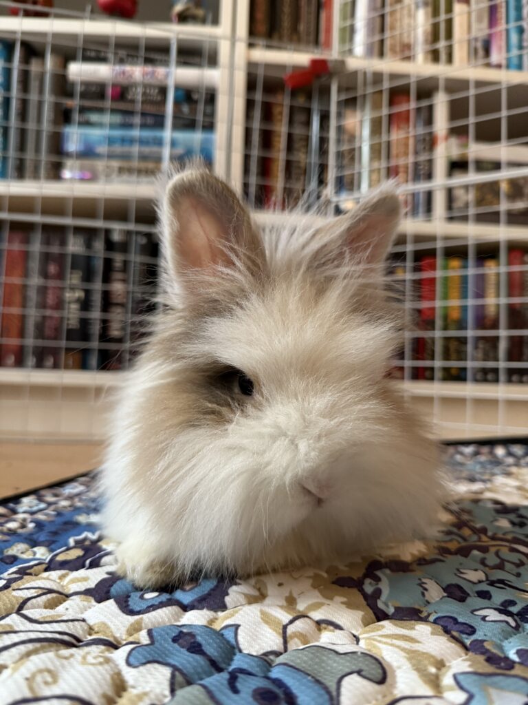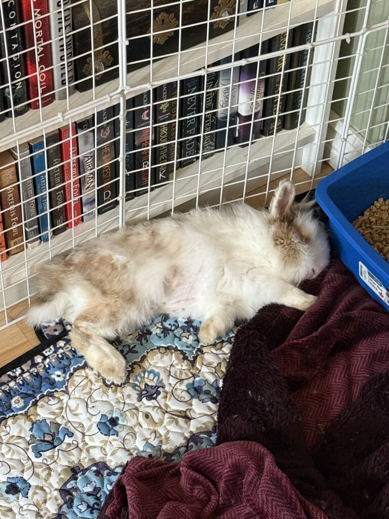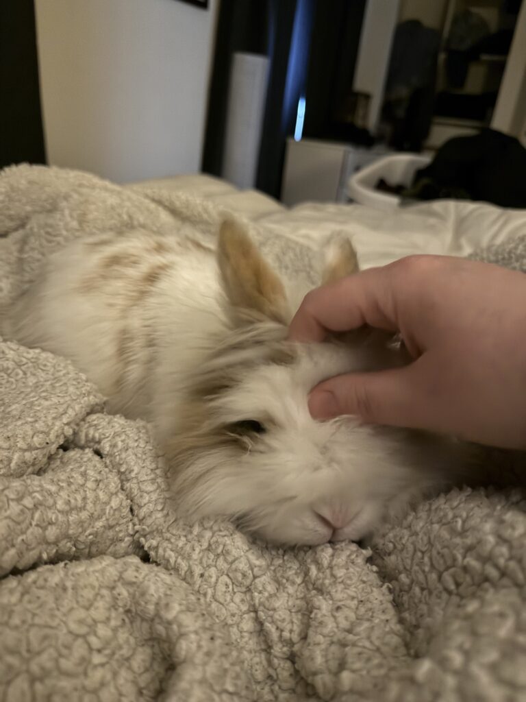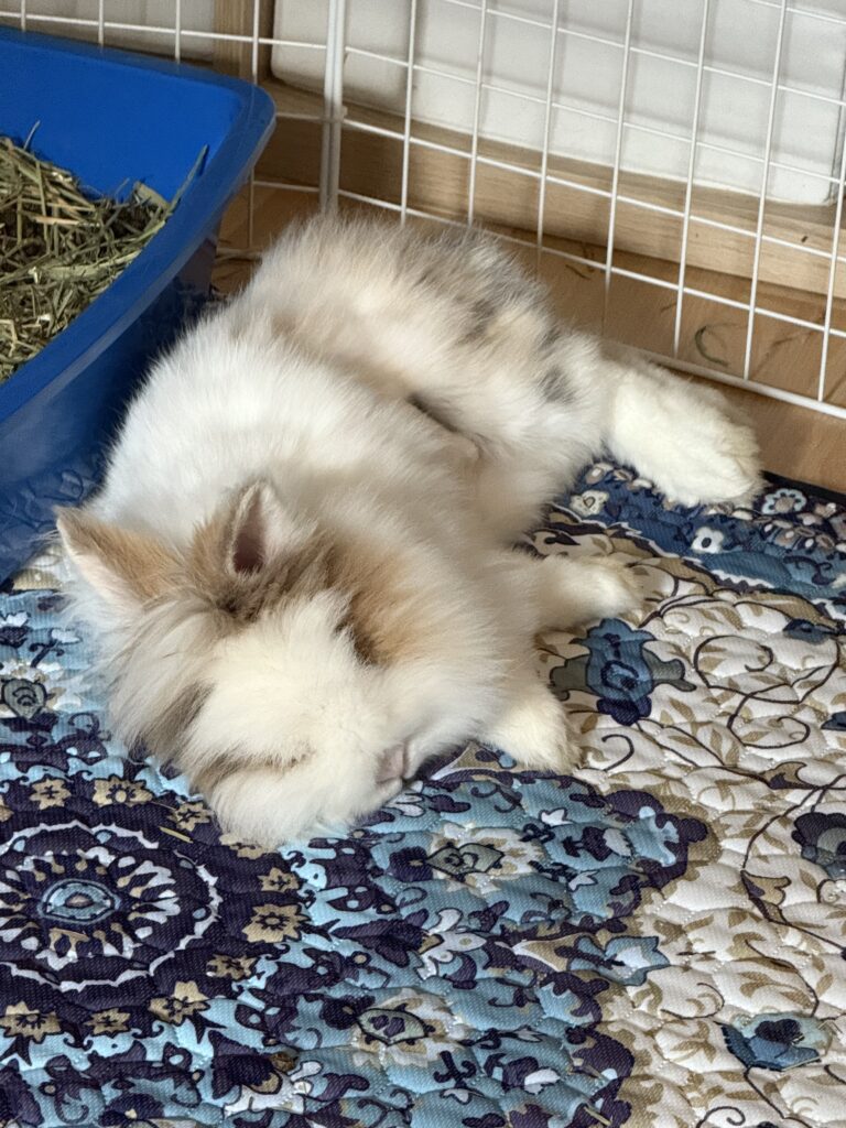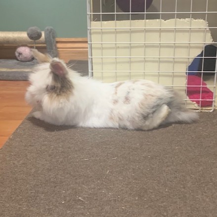 Louise loves a good flop nap in between her grand explorations! When she isn’t sleeping, she can be found sniffing around every corner and area to see what’s going on. She doesn’t love being penned, and is happiest free roaming in a bun proofed space where she can run around and stretch her legs to her heart’s content.