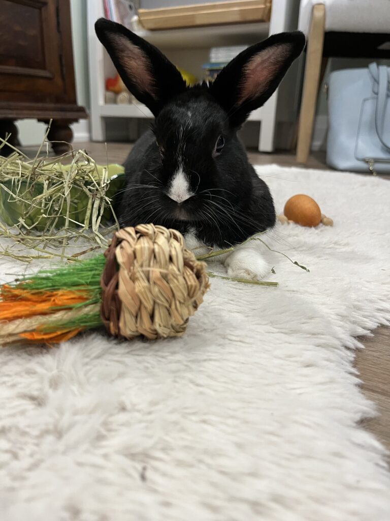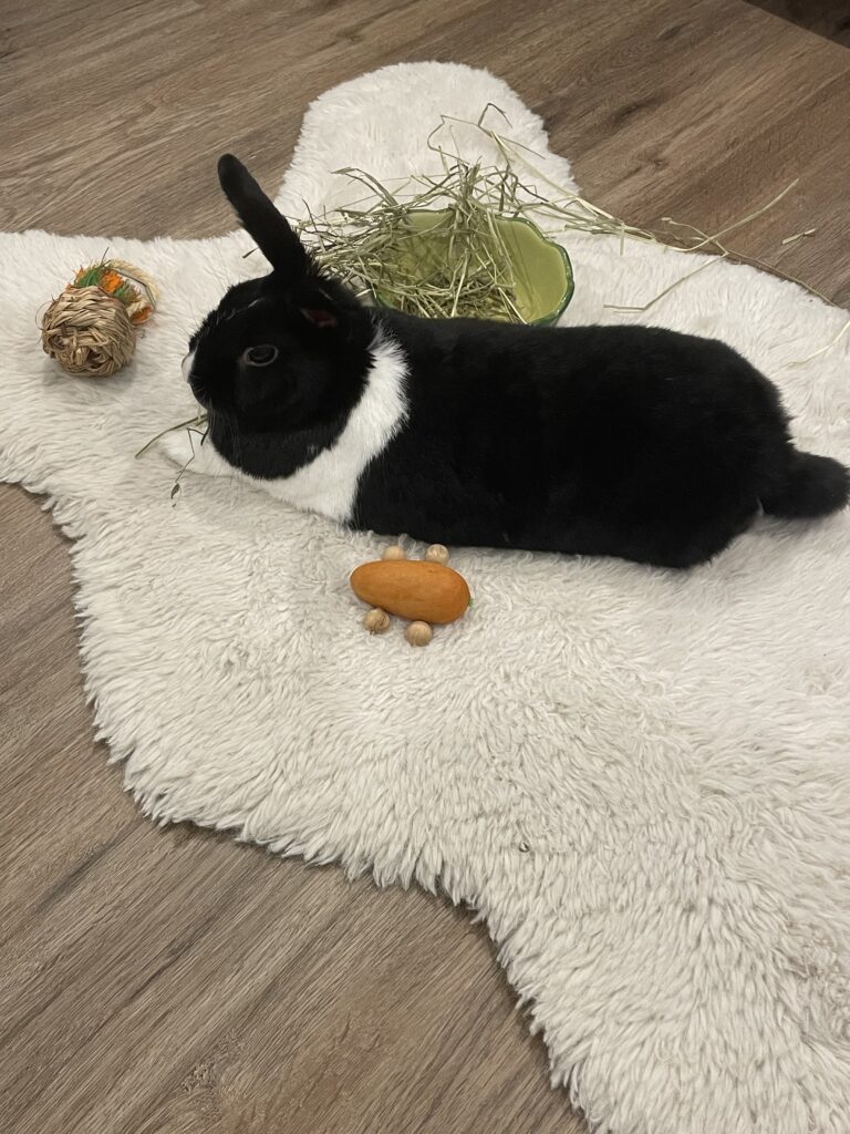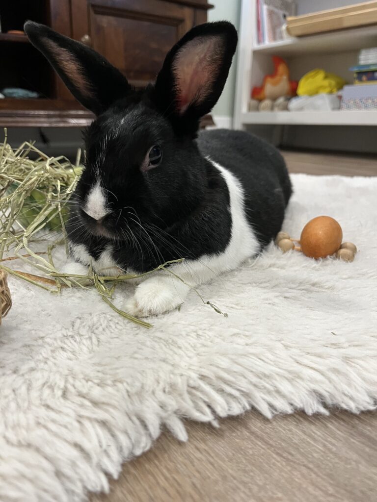 Maggie came to Rabbit Rescue after her owner needed to surrender her as part of their end of life plans. Since arriving into foster care, Maggie has been settling in and warming up to her new life. She loves stretching out and relaxing and getting pats. Stay tuned as we learn more about her!