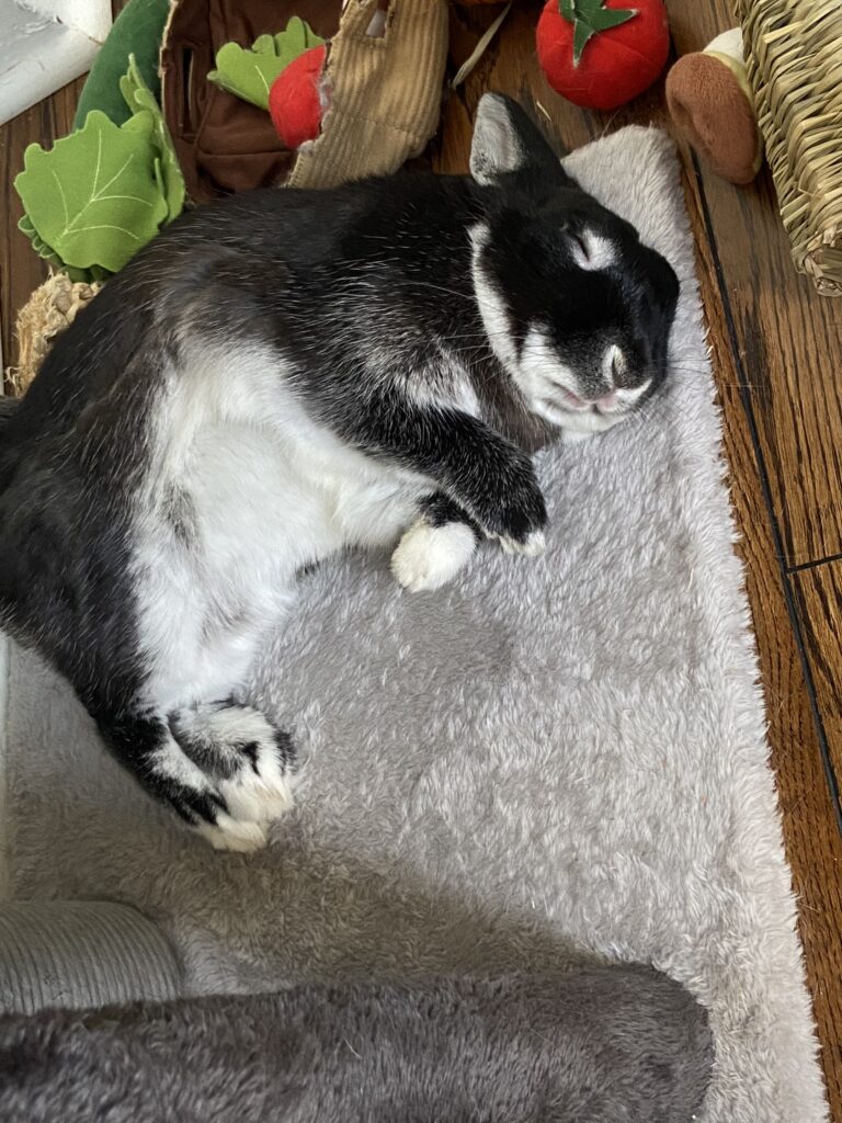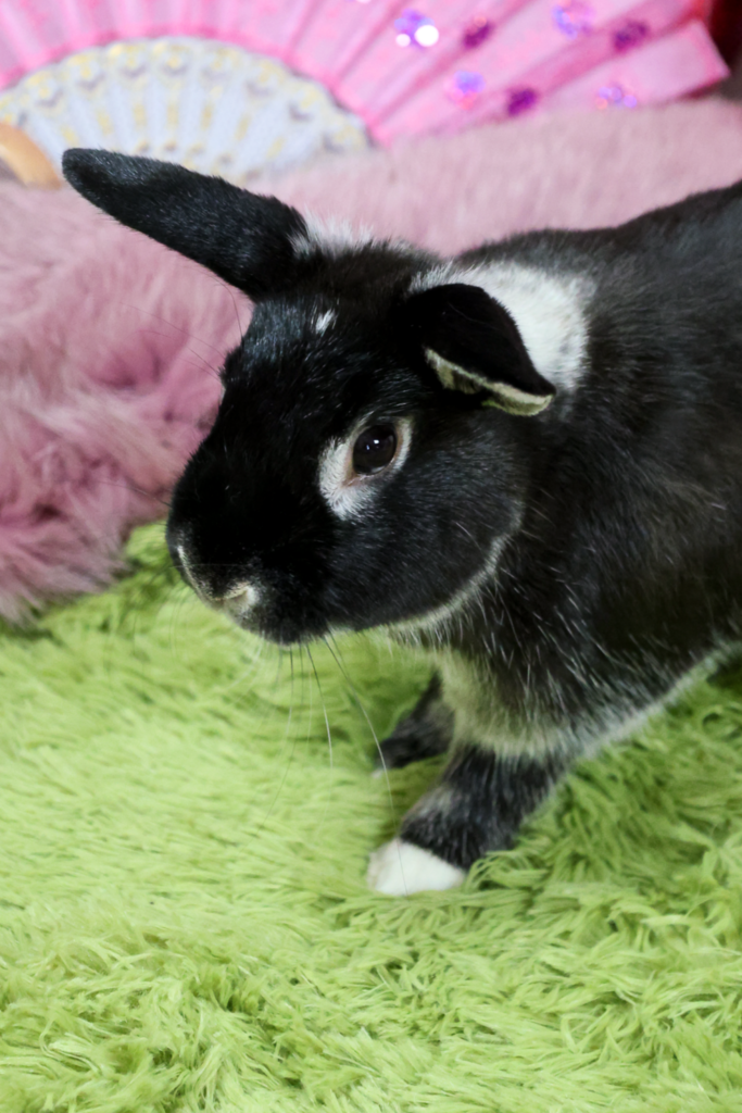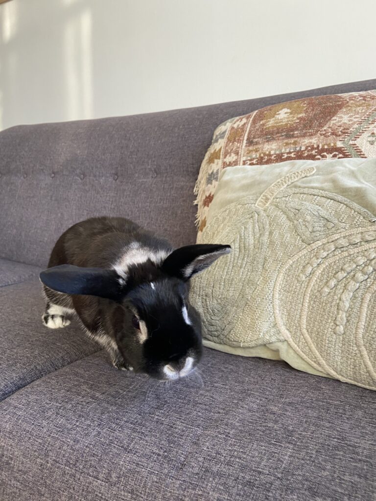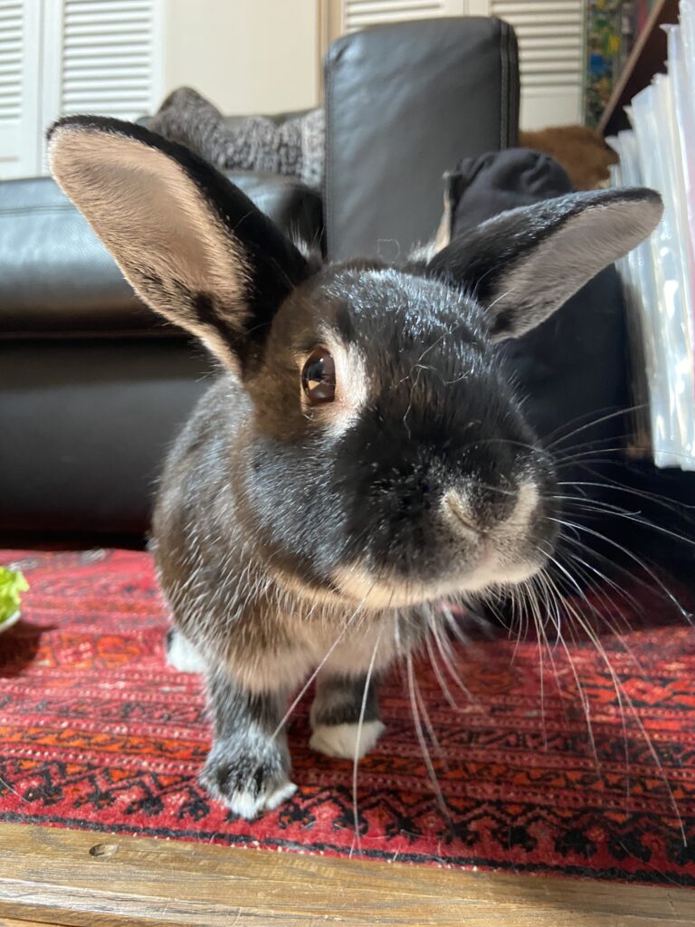 Note: Pea is not in a Rabbit Rescue foster home – she is with the owner who is looking to surrender her.