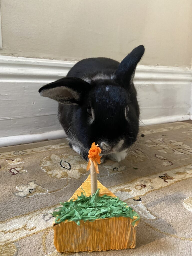 From hay blocks to cardboard to a good piece of curly parsley, she knows what she likes and will let you know. Pea is a curious girl, who likes to explore every inch of her surroundings. If you get on her level, she will come right up to you and check you out (in between zoomies and floor flops of course). She loves a head pet, and has soft silky fur. Her ears are one of her quirkiest features: not quite up, not quite down, just flopping around depending on her mood and very welcoming to a rub.