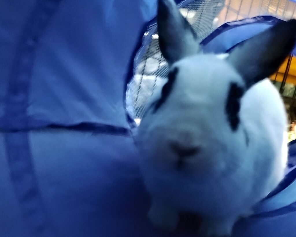 Tulip is cautious about being petted, but she loves to play with her toys and will binky to show her happiness. Playtime with Trillium makes her binky extra, as does mealtime! Tulip is a high energy bun that prefers things on her own terms. She is particular about how her things are set up and will be sure to let you know if anything is out of place!