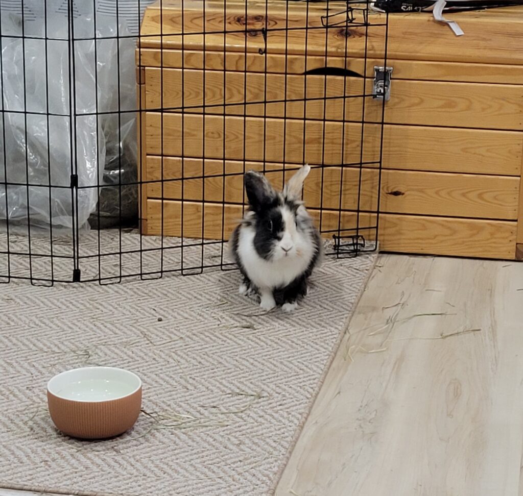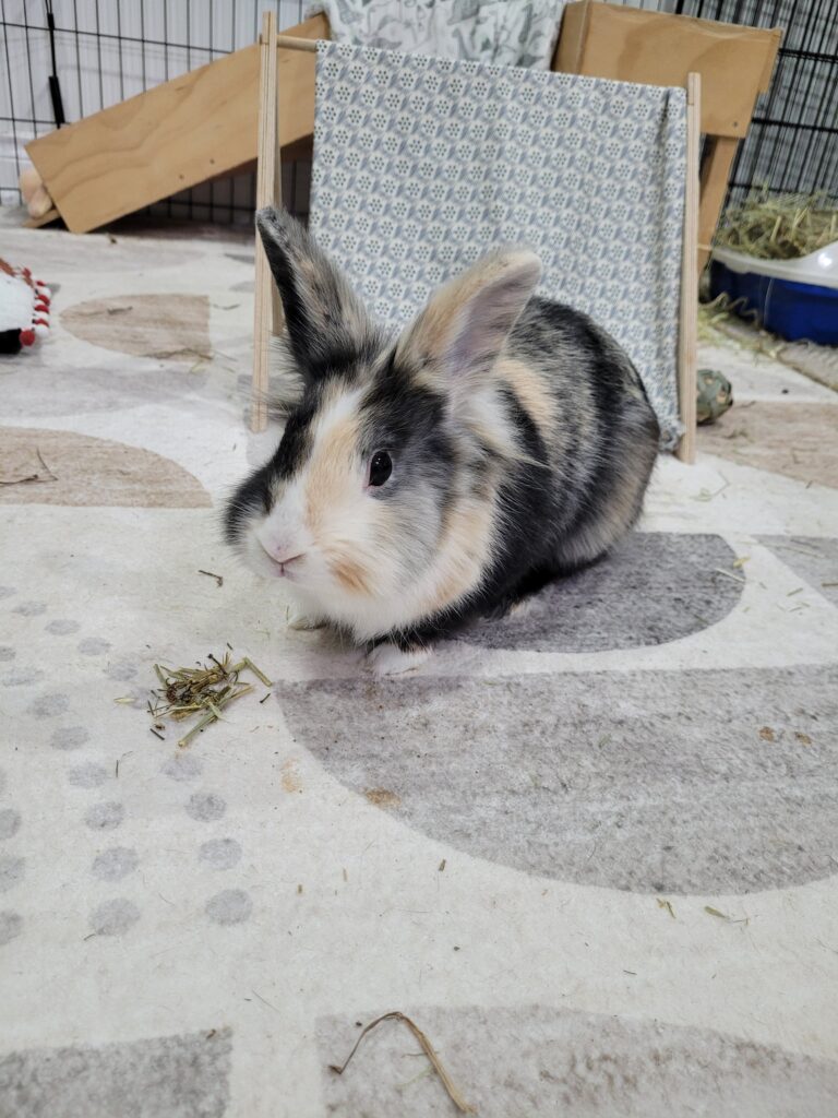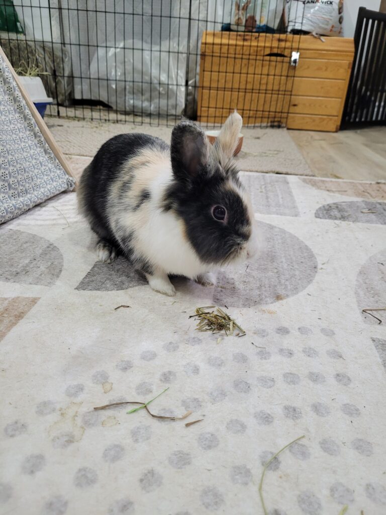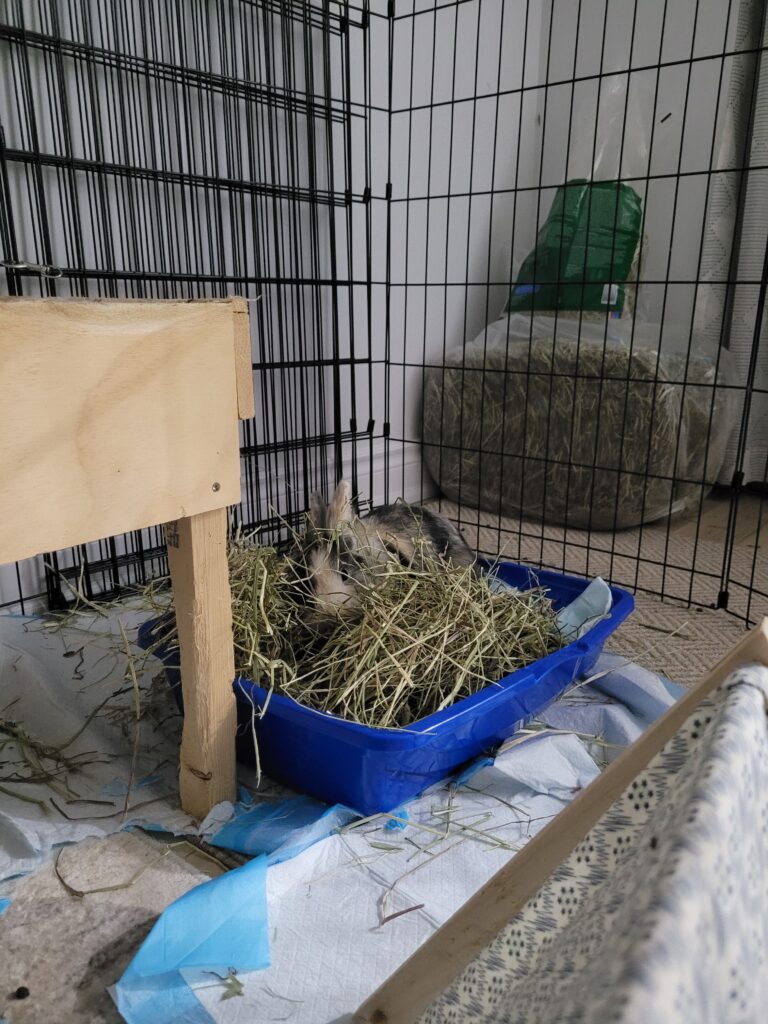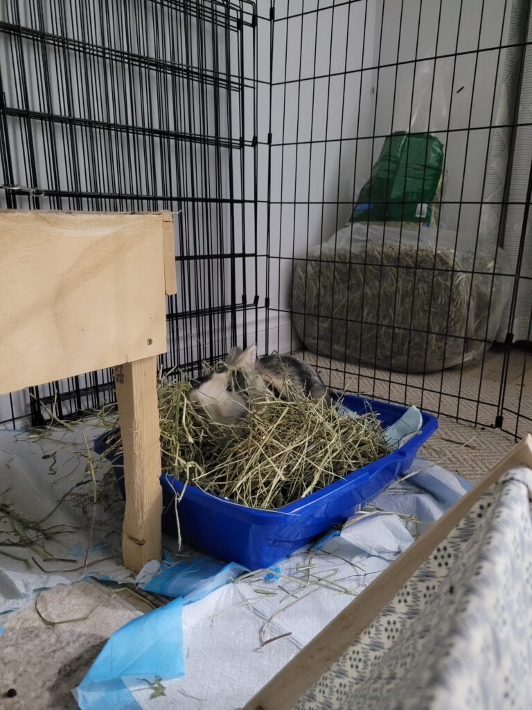She has enjoyed all new veggies, and loves her hay and pellets. Her litter habits have been good from the day she arrived in her foster home, in fact she does her business on the same side of the litter box every time!