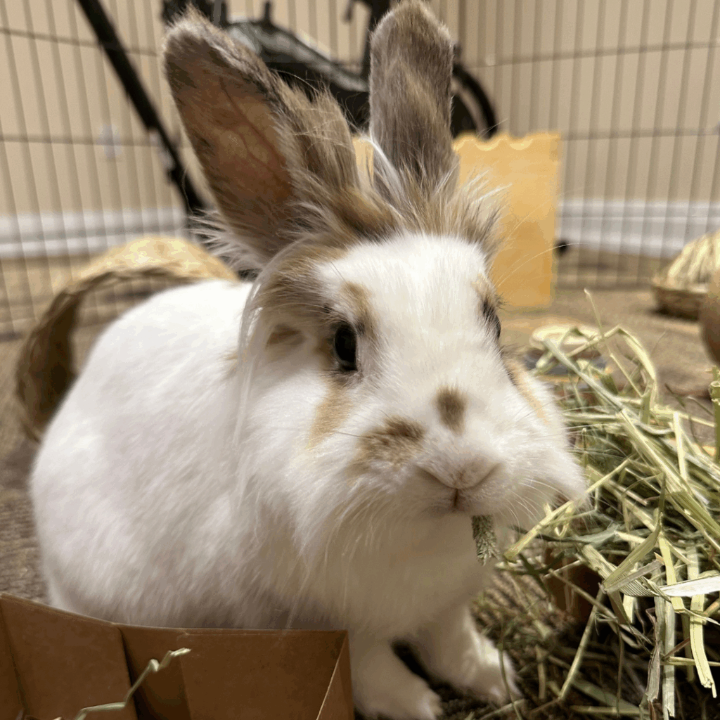 Willow, also known as “the princess” of the foster house, was born in 2022. She came to Rabbit Rescue from a local overfull shelter that needed help after she’d been surrendered by her previous owner.