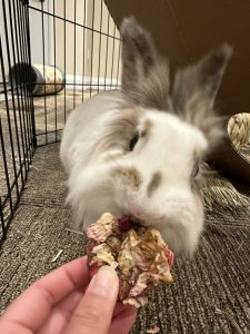 Variety is key! It’s important to keep in mind that not every bunny will like every toy. Some bunnies will like toys that are noisy, some like toys they can tear apart or dig in, and some also like toys that they can throw around. There are plenty of great toys that you can buy for your rabbit. Be sure to check out our online store at http://store.rabbitrescue.ca/ for rabbit safe toys that support the bunnies in our care!